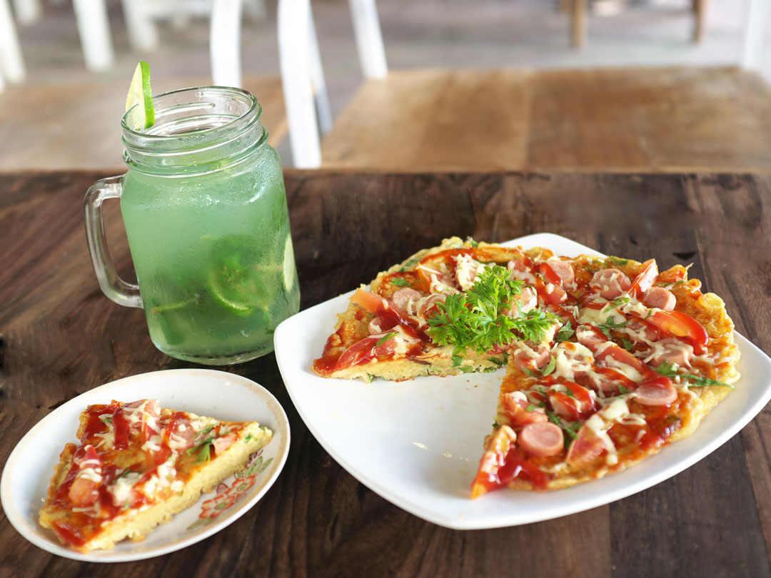 Pancake buah ini salah menu mereka yang cukup langka, pancake yang dibuat dengan menggunakan topping dari nangka, strawberry dan pisang diletakan masing masing buah di satu pancake. Ukuran nya walaupun kecil tetapi tidak kalah lezat nya dengan pancake yang dijual di cafe cafe yang ada di kota