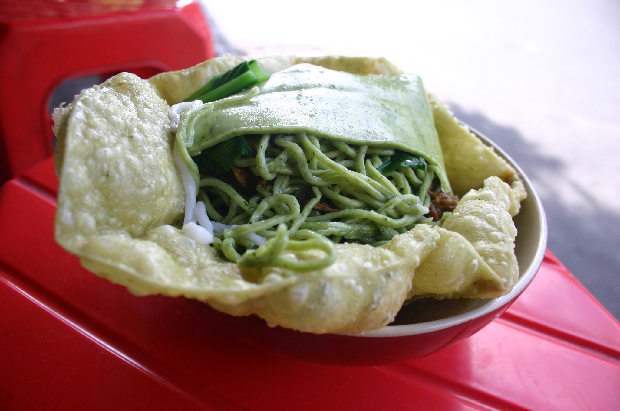 Mie ayam tunggal rasa kota baru ini selain menjual mie ayam biasa juga menjual mie ayam hijau